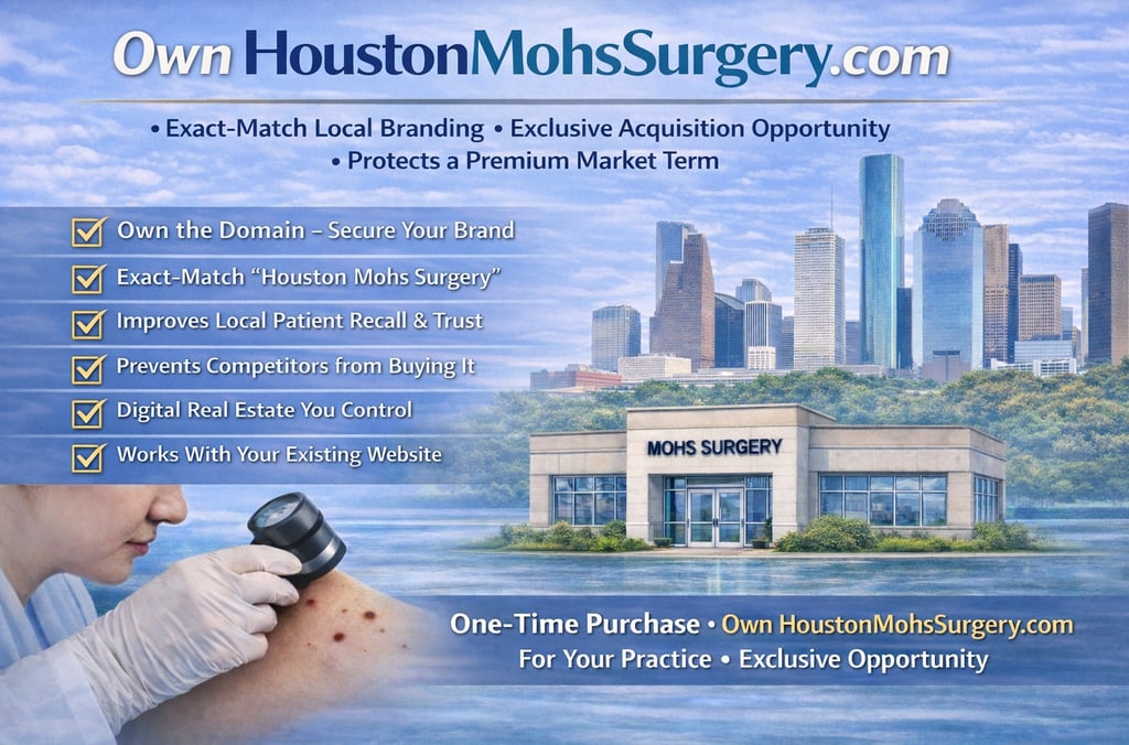 When patients search online for Mohs surgery in Houston, a clear, location-specific domain like HoustonMohsSurgery.com immediately communicates what your practice offers and where you are located.